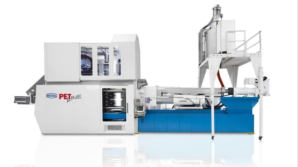 Netstal PET-Line offers the broadest compatibility with existing side-entry molds and post-mold cooling stations. The system impresses with superlative output, exceptional energy efficiency, optimized processing of PET recyclates and an intuitive operating unit.
