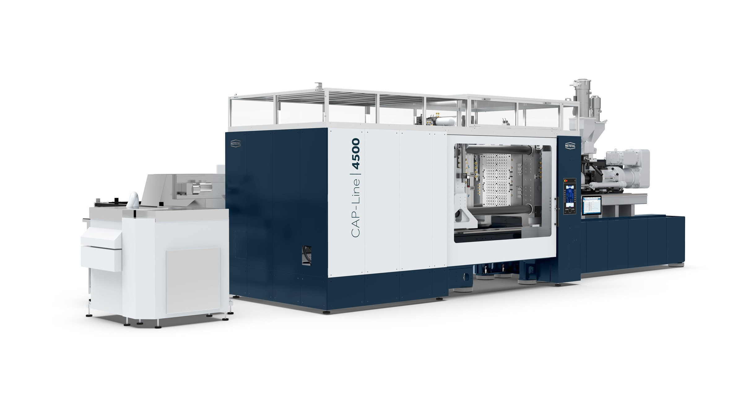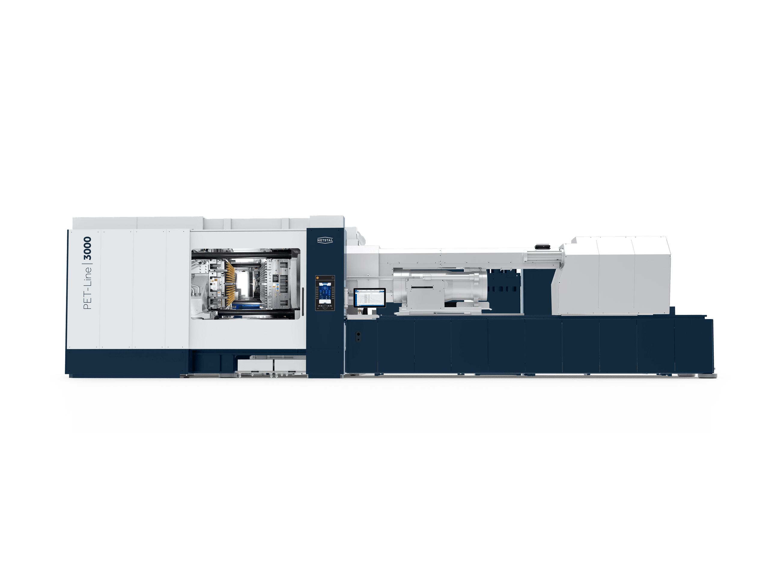 Weltpremiere der neuen PET-Line, der ersten PET-Maschine von Netstal mit Seitenentnahme